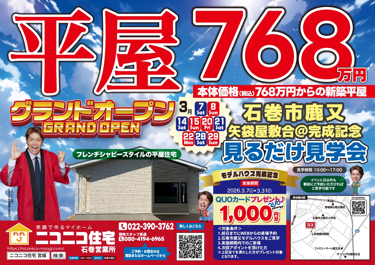 【石巻市鹿又】平屋のモデルハウス“見るだけ”見学会