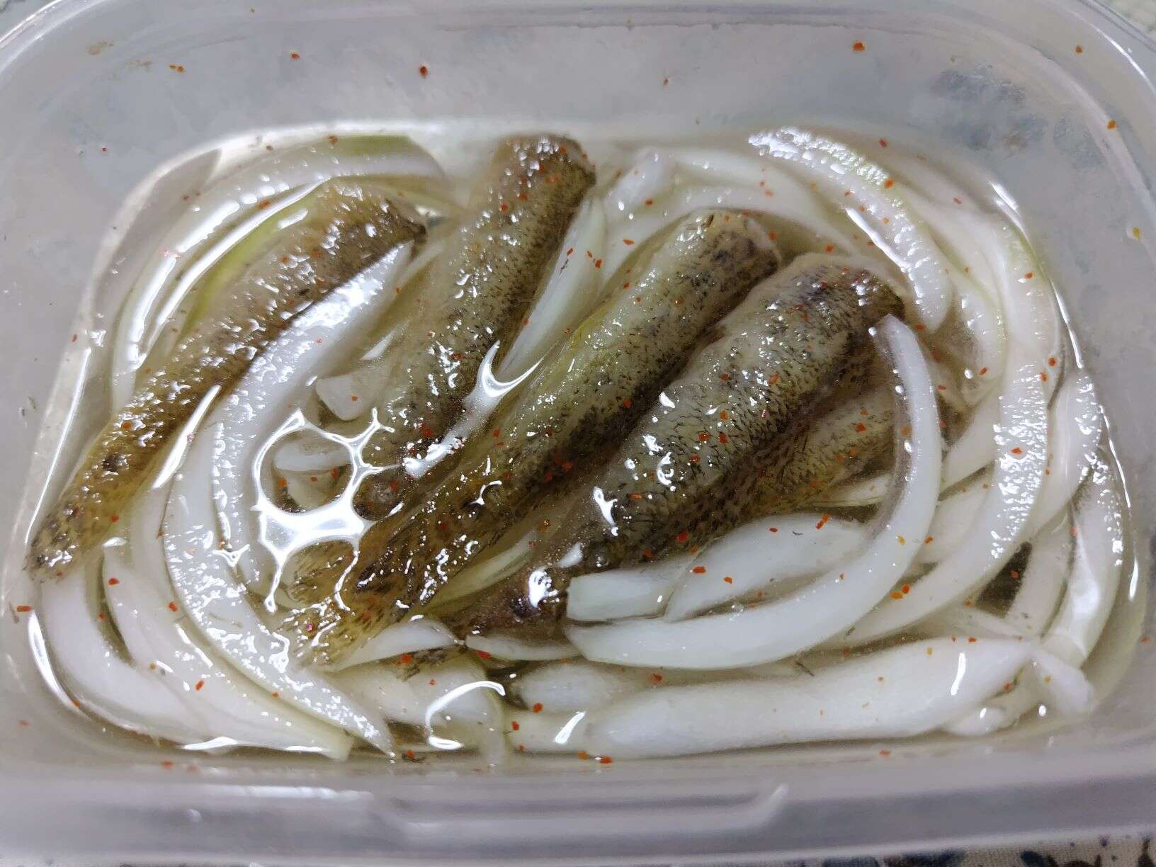2時間ほど冷蔵庫でねかせれば、ハゼの南蛮漬け風の出来上がり!