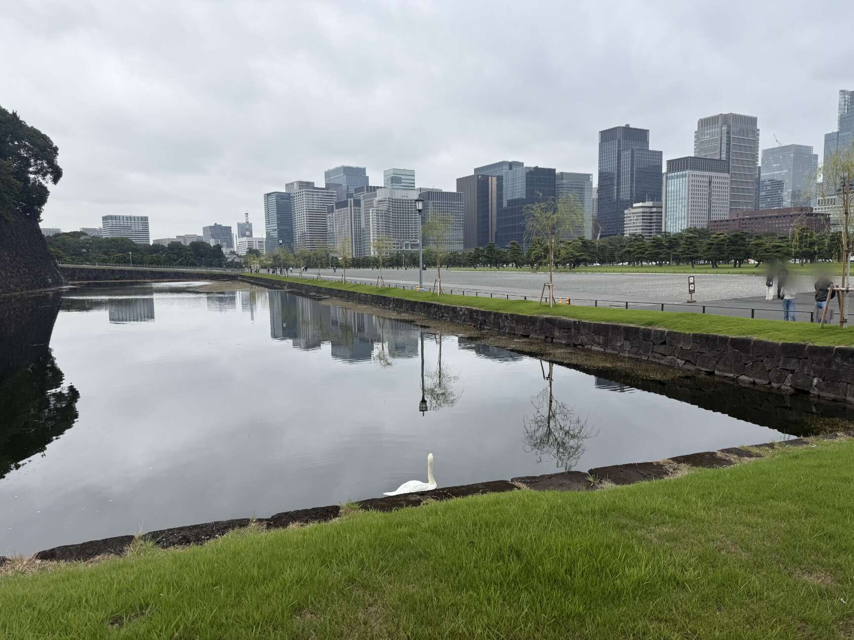 お堀を泳ぐ白鳥🦢を眺めながら、しばらくぼんやり。