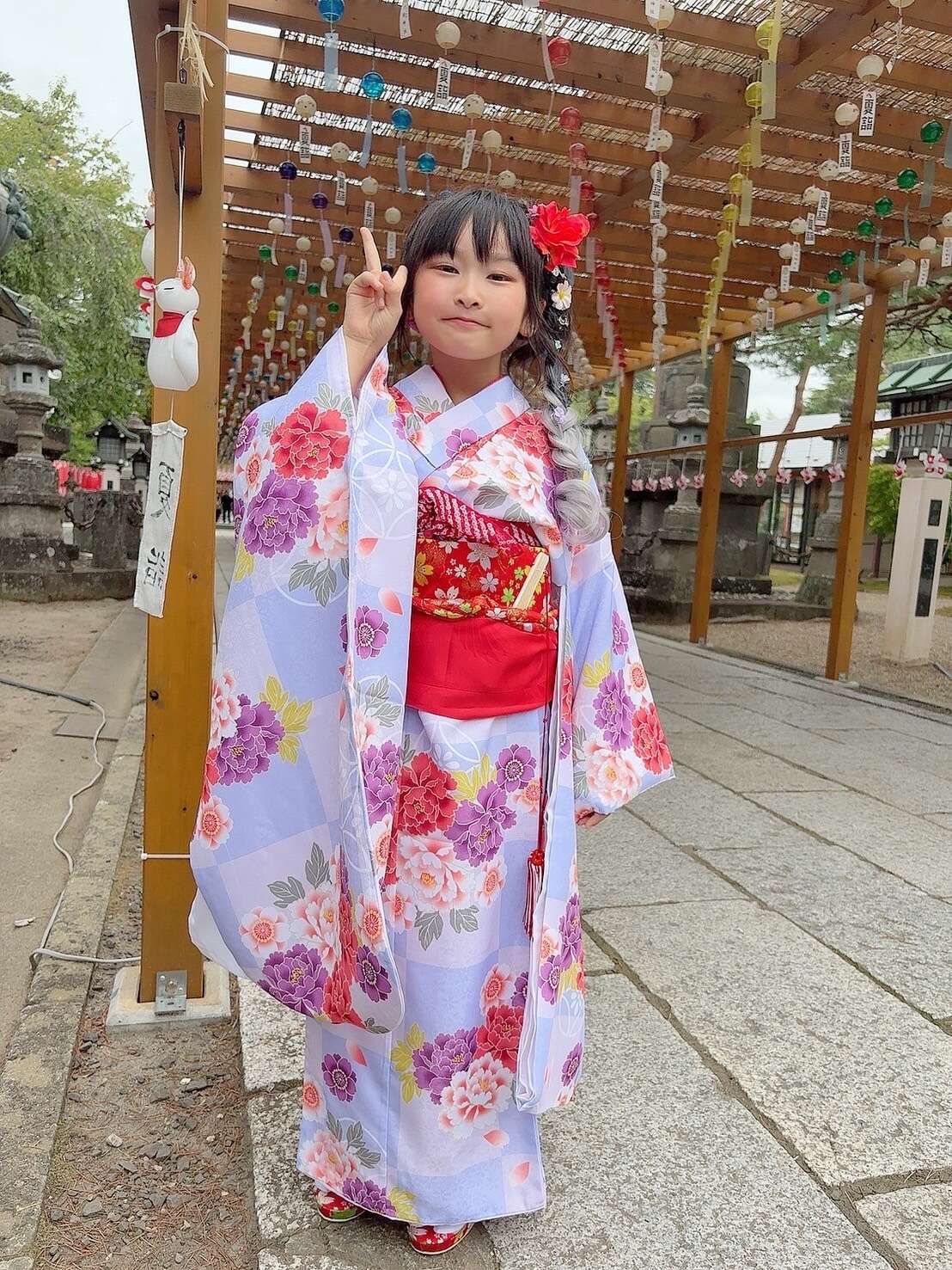 七五三の時期には少し早いですが、竹駒神社の夏詣で、新調した晴れ着を着ての記念撮影。