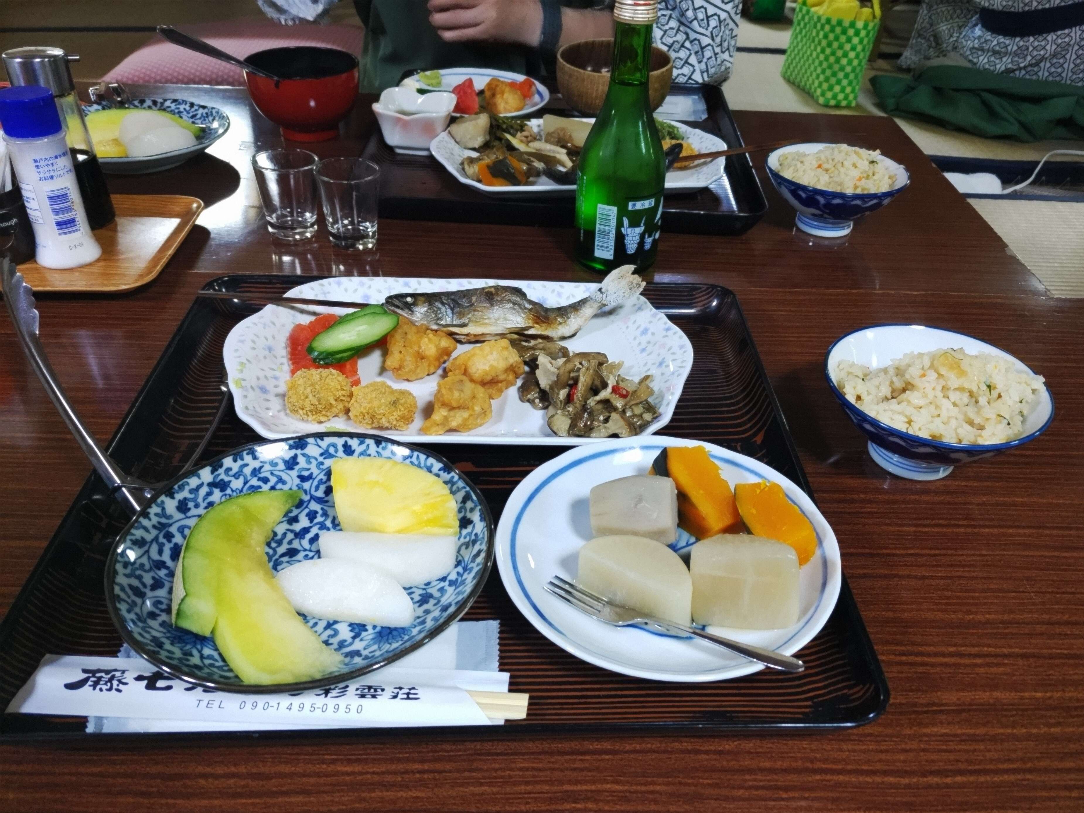 食事は山の幸がメインの夕食で、マツタケごはんやイワナの塩焼き、山菜など。
