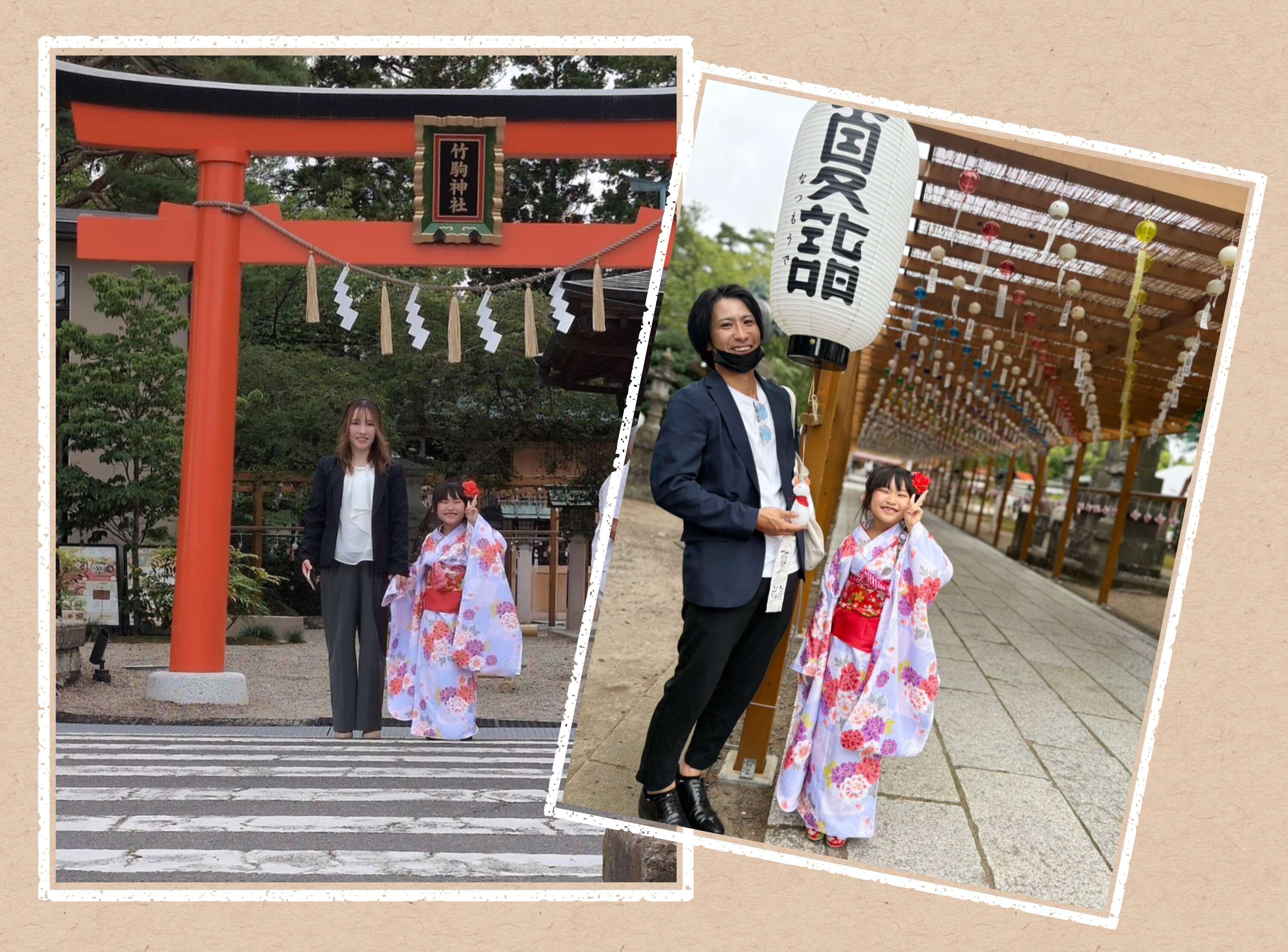 七五三の時期には少し早いですが、竹駒神社の夏詣で、新調した晴れ着を着ての記念撮影。