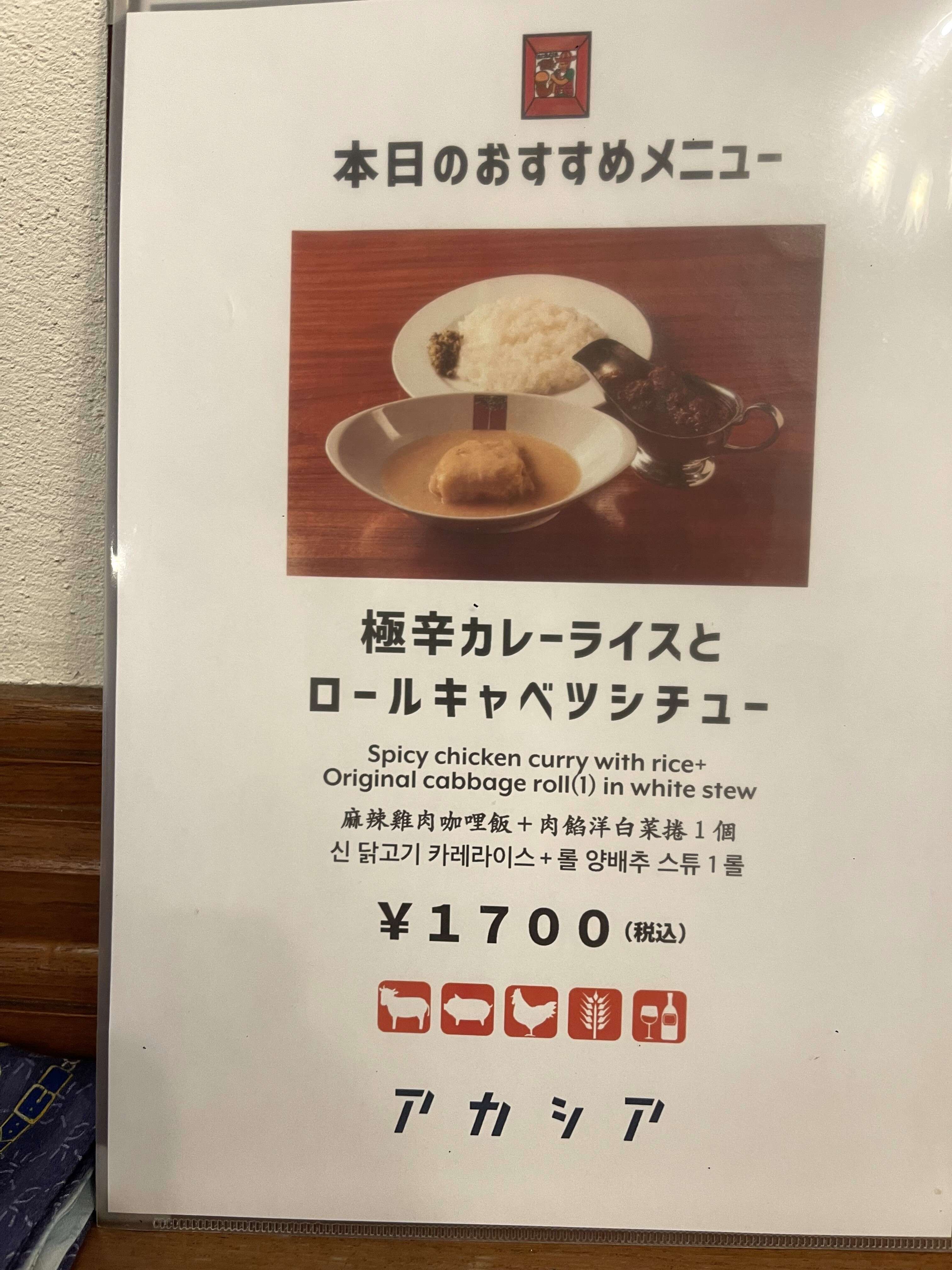 注文したのは、極辛カレーライスとロールキャベツシチュー🥄