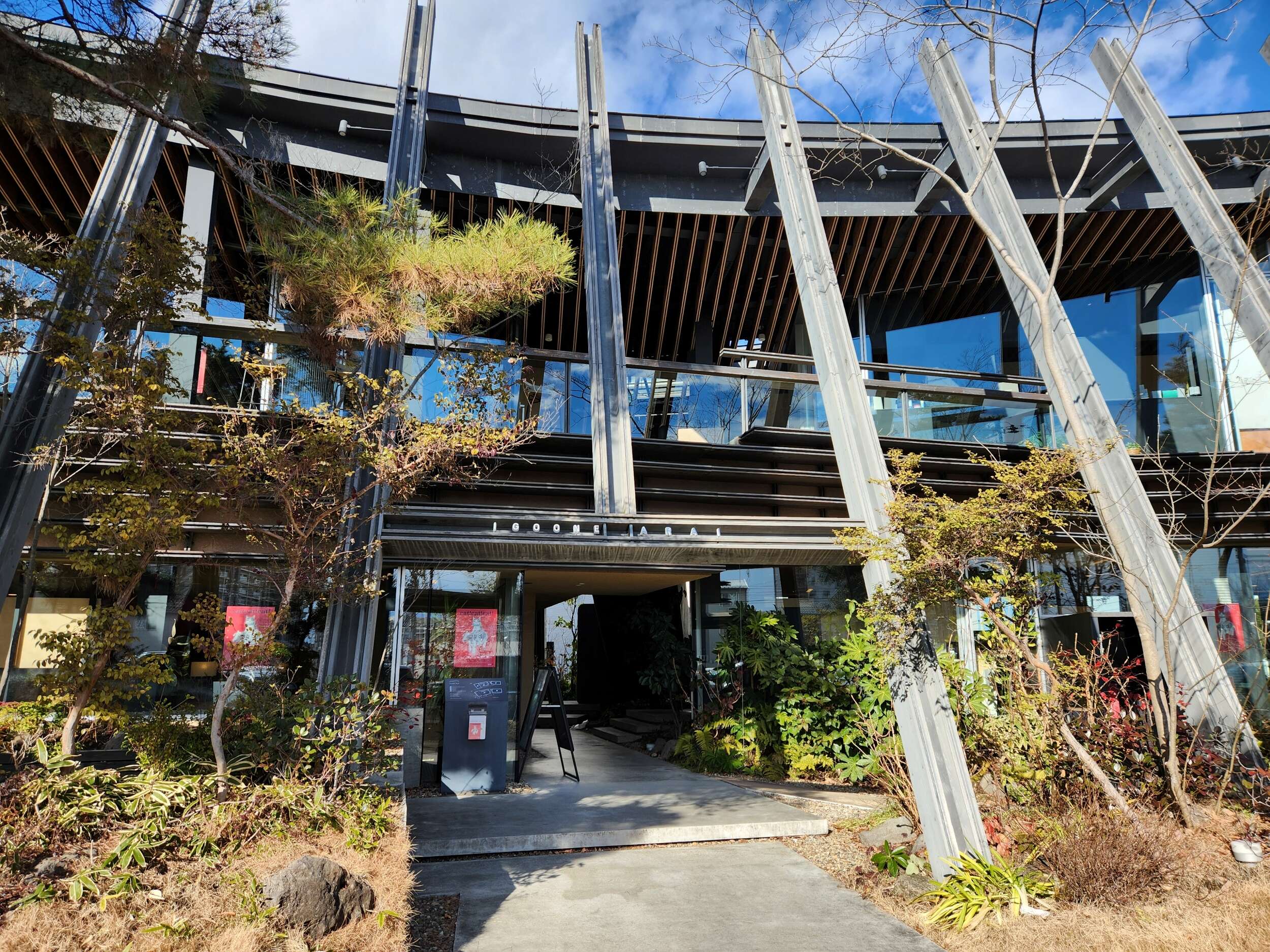 大きな看板を設けず、自然と建築が溶け合う心地よい空間になっています。