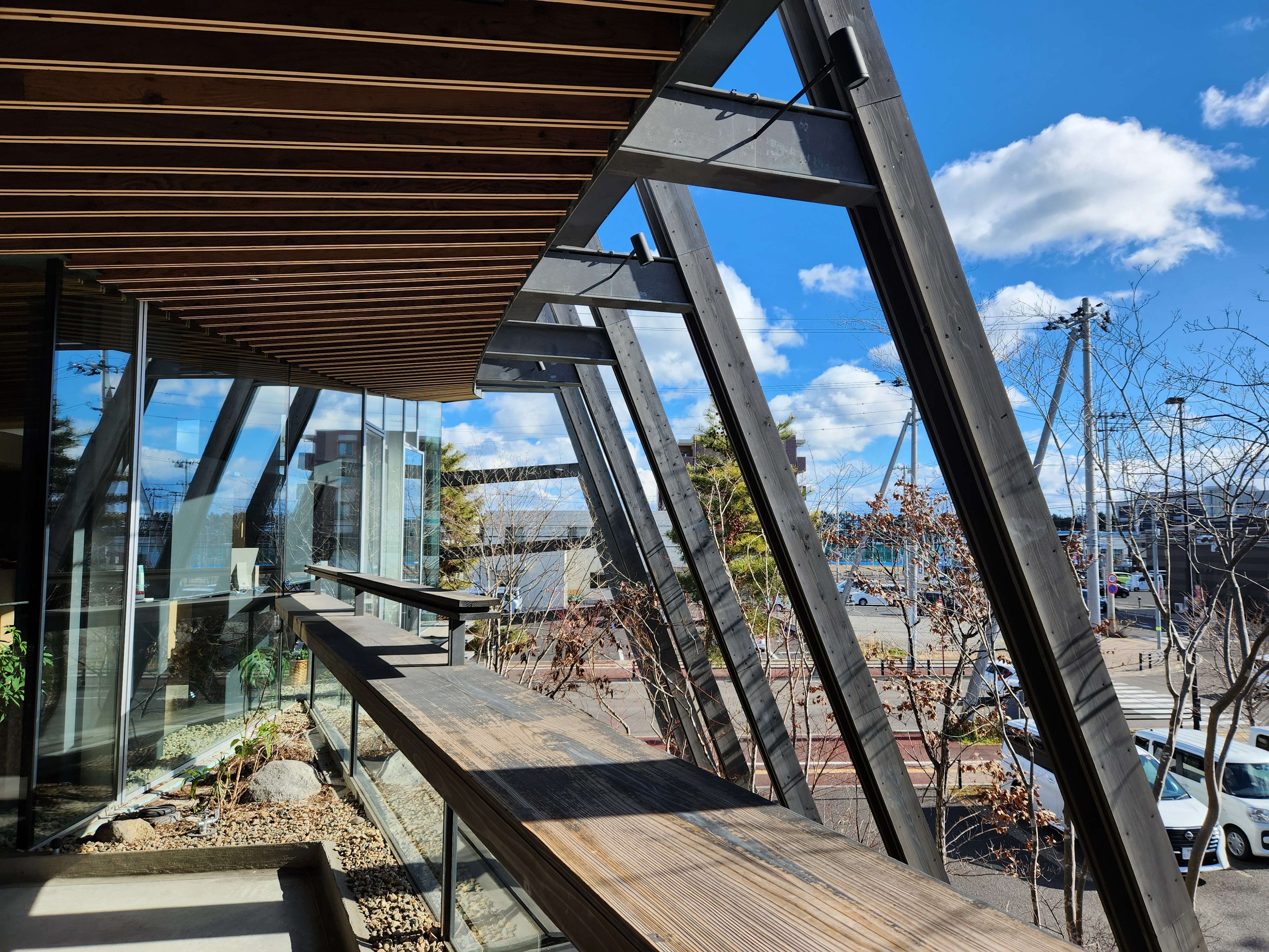 こちらの建物は、2013年から南三陸の復興計画に携わっている隈研吾さんが設計した3つの施設