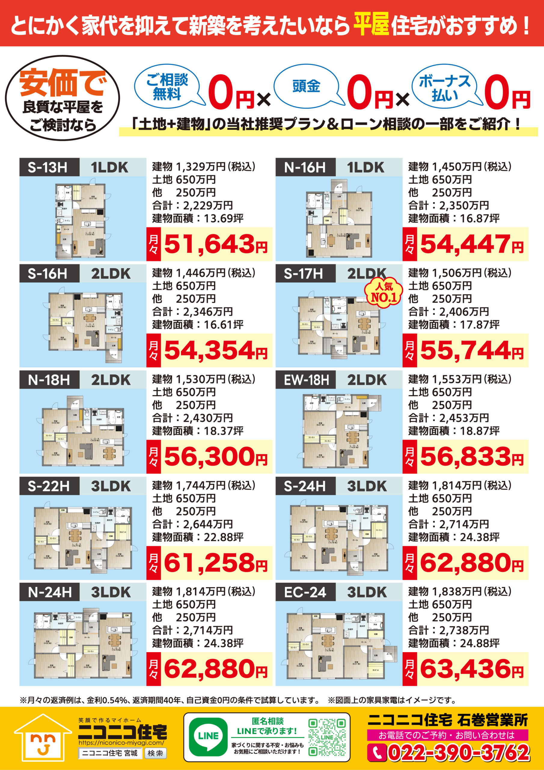 石巻市築山の平屋モデルハウス見学会を開催します。