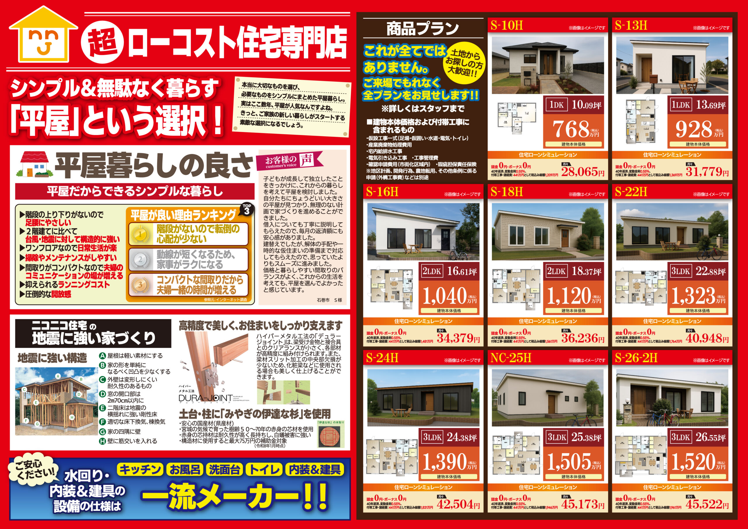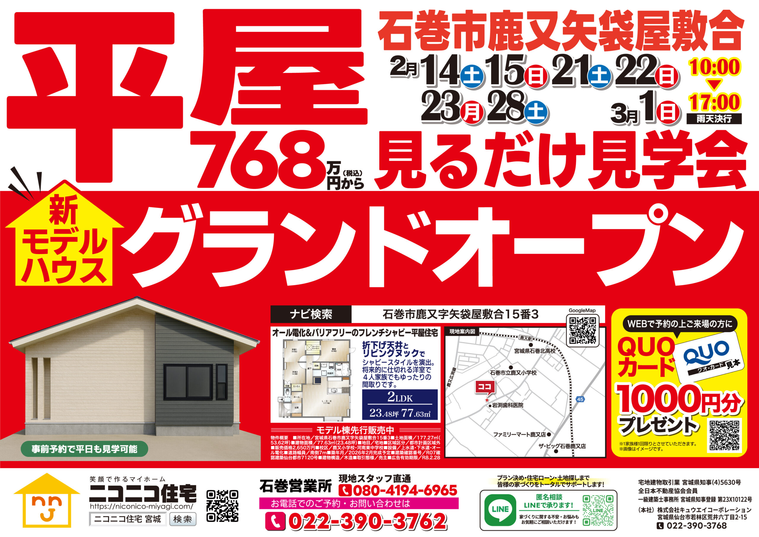 石巻市鹿又に完成した平屋の新モデルハウス 『見るだけ見学会』を開催します。
