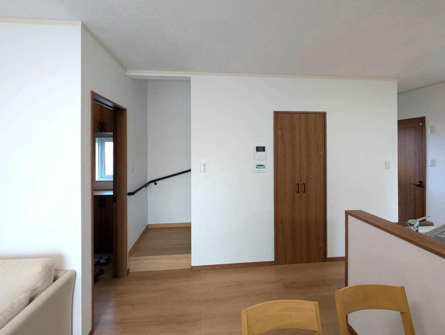 キッチンから洗面所へスムーズにアクセスできる家事動線や、2階の各居室に設けられた収納スペースなど、